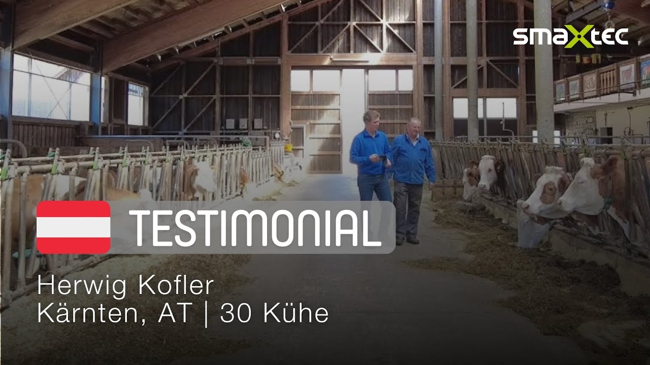 Auf seinem Milchviehbetrieb im Gailtal in Kärnten hält Herwig Kofler eine Herde von 30 Milchkühen mit eigener Nachzucht und nutzt seit rund 3 Jahren smaXtec, um das Herdenmanagement und die Tiergesundheit zu verbessern. „Durch smaXtec haben bei uns am Betrieb besonders die Kühe profitiert, weil die Tiergesundheit besser geworden ist. Aber auch uns beruhigt es, wenn man Probleme frühzeitig erkennen und rasch reagieren kann – dadurch sind auch wir gelassener geworden“, sagt der Landwirt. „Die Tiergesundheit im Stall ist enorm wichtig, denn nur gesunde Tiere bringen die Leistung, die man von ihnen erwartet, sind langlebiger und besitzen eine gute Fruchtbarkeit.“